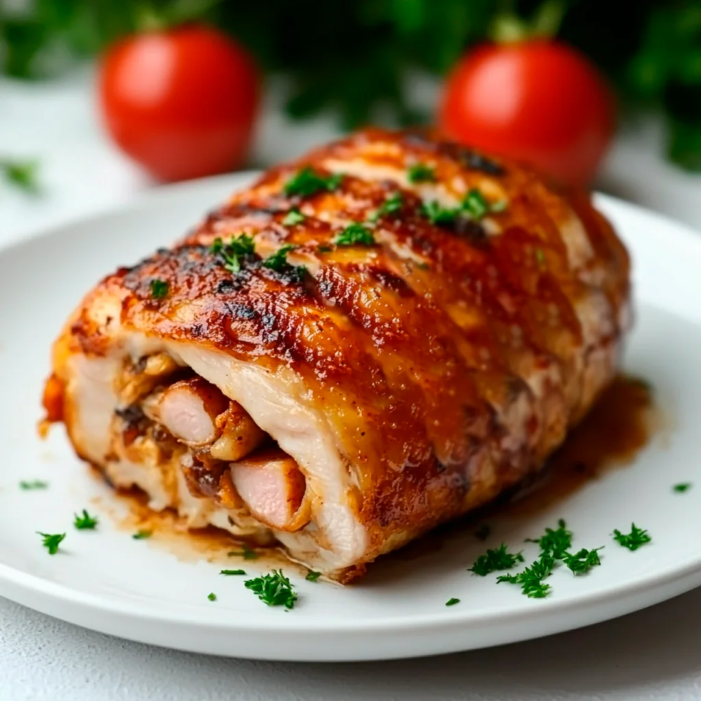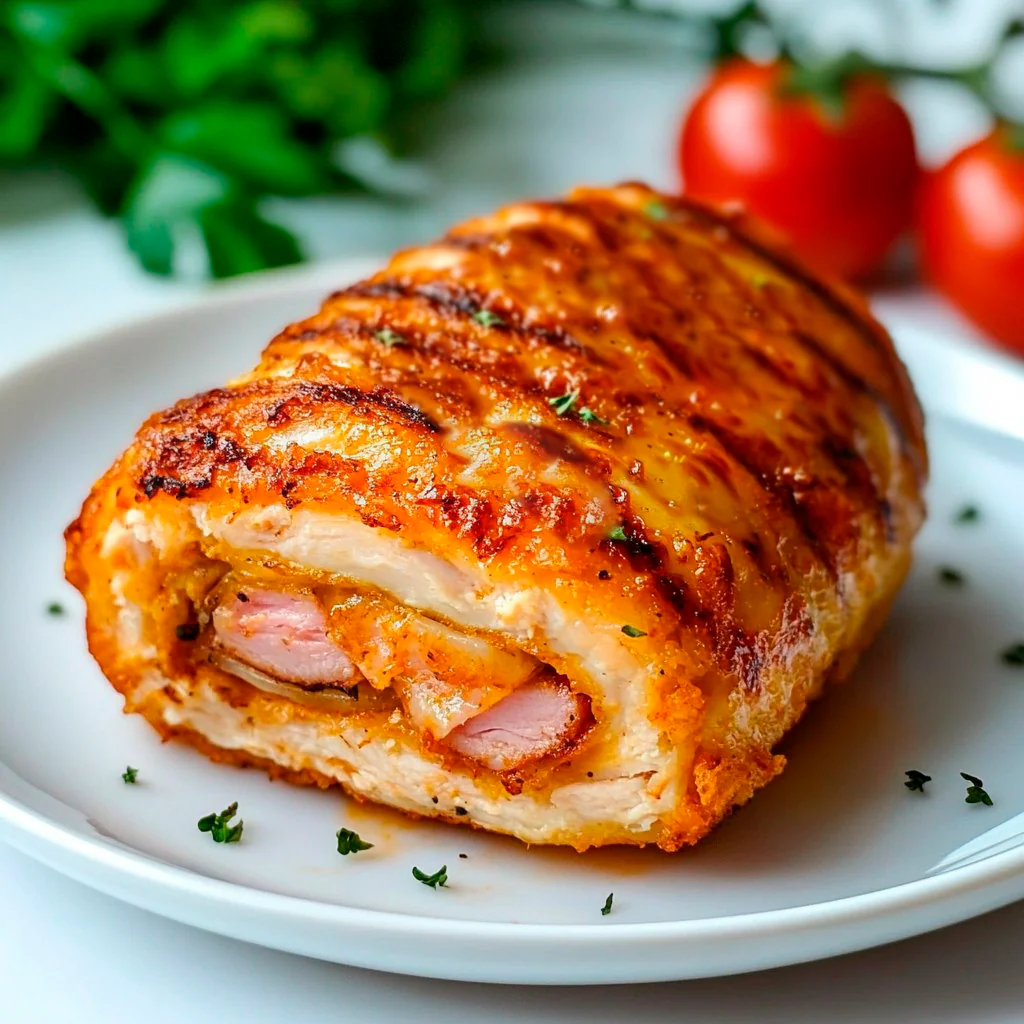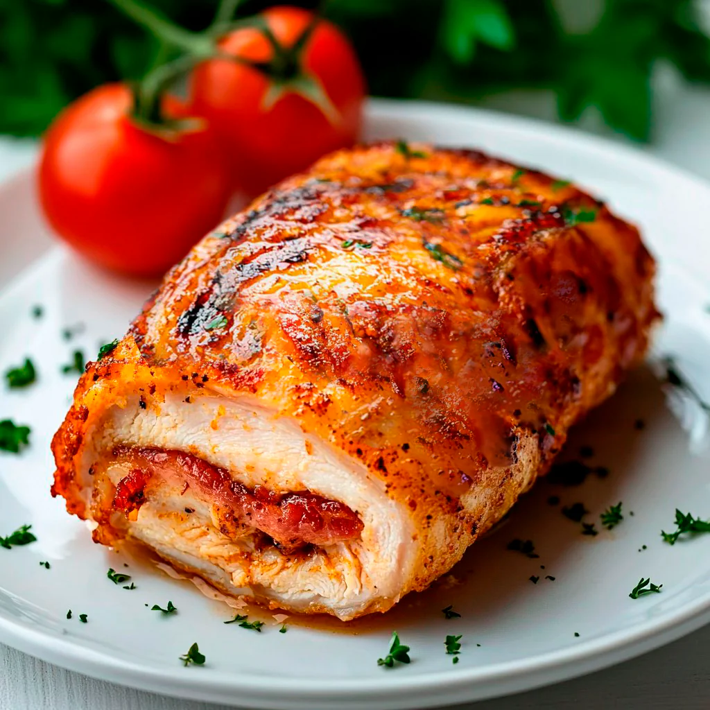 Жаренный ролл. Бекон Курица копчёная Помидор Майонез Лук зеленый
