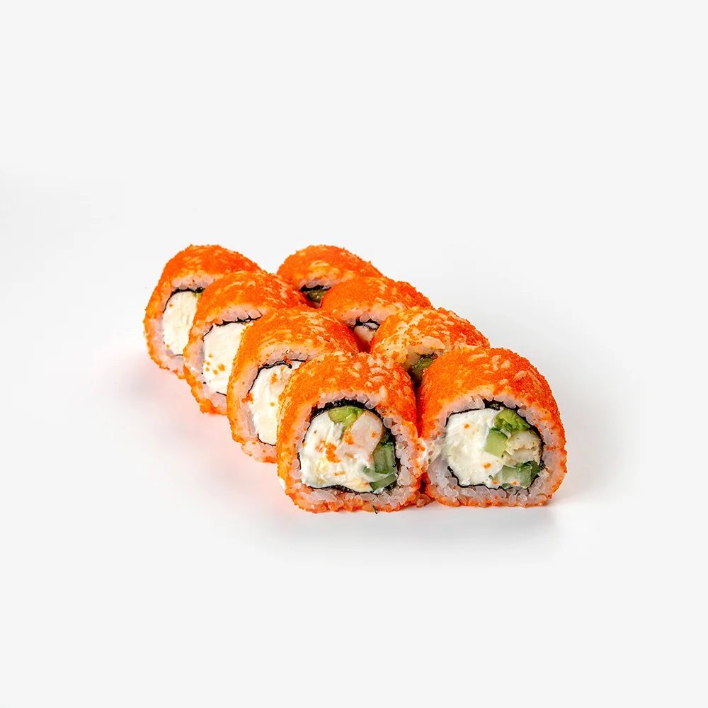 Имитация краба, тобико , дайкон маринованный, огурец, сливочный сыр