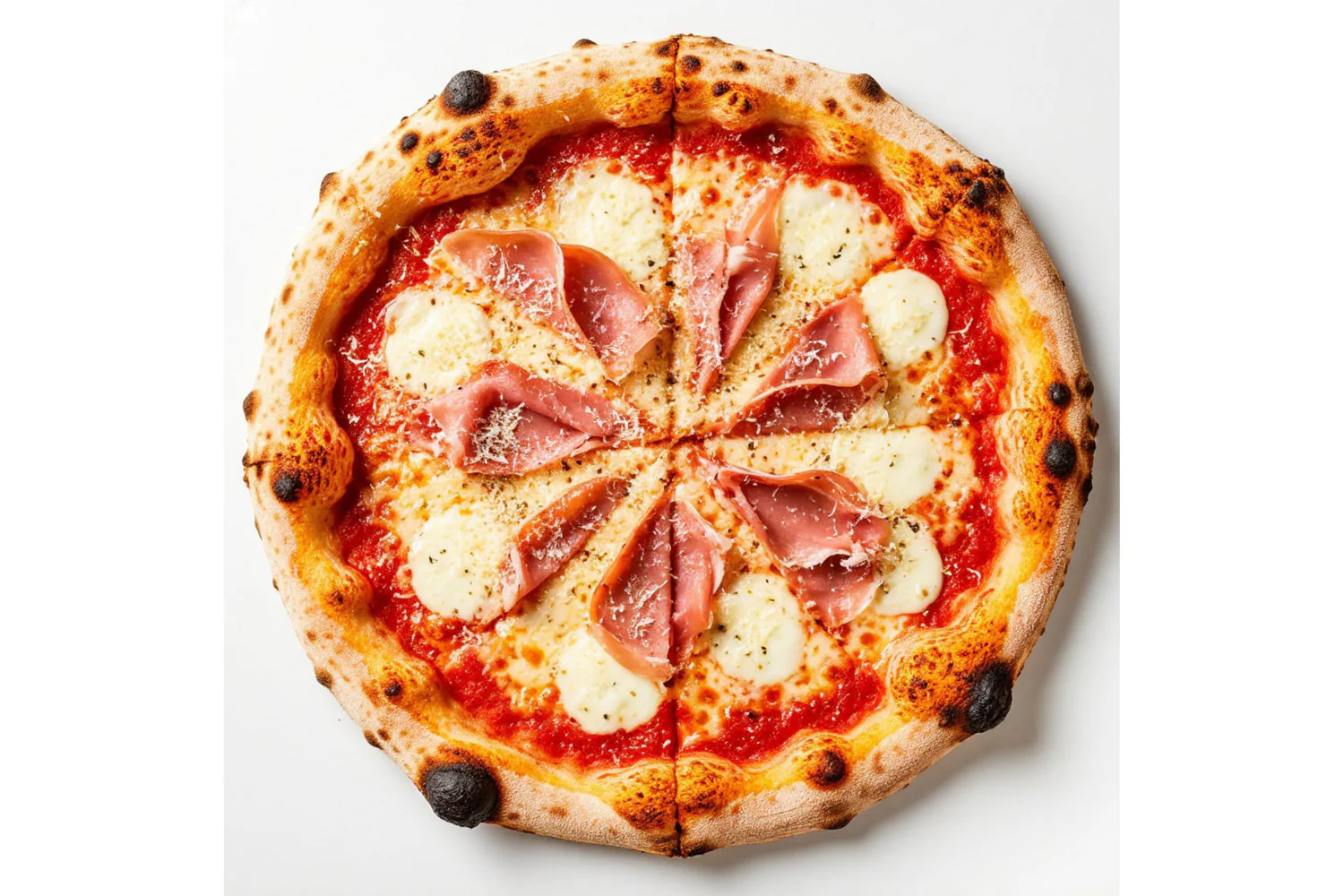 Неаполитанская пицца. Состав - моцарелла, Ветчина, пармезан, фирменный соус.